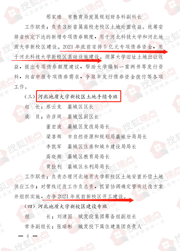 并提出,2021年底前安排5亿元专项债券资金,用于河北科技大学新校区基础设施建设;力争2021年底前河北地质大学新校区开工建设;力争2021年底前完成河北师范大学西院项目完成片区征收工作。