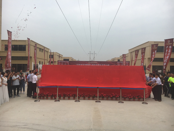 最后,在热烈的掌声中,活动迎来了最重要的揭牌环节,鹿泉区委常委宣传部长石向军先生、鹿泉区副区长、石家庄西北物流产业聚集区管委会主任张森 先生、河北环城国际集团董事长叶少华先生、北方汽配城董事长、河北环城国际集团副董事长卢放先生、河北交通广播总监边宇峰先生河北环城国际集团副董事长李立民先生六位领导携手将 “华北汽车文旅小镇·新北方汽配城”牌匾上的红布缓缓拉下,在声声礼炮的轰鸣下,牌匾在璀璨阳光下闪耀光芒,现场响起了经久不息的掌声,这座承载财富与希望、快速崛起的产业航母初现身姿。