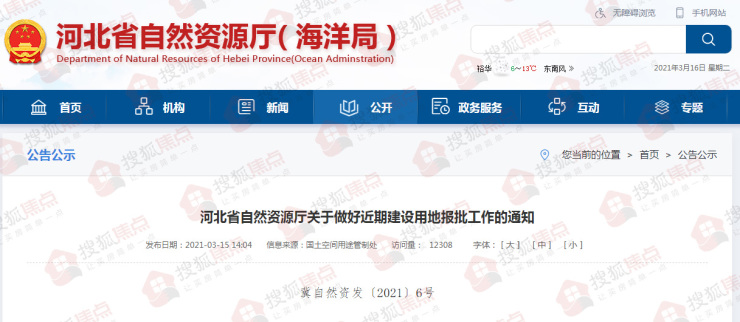 3月16日消息,搜狐焦点获悉,近日,河北省自然资源厅发布了关于做好近期建设用地报批工作的通知。内容显示,规划过渡期内,各类建设项目选址应符合土地利用总体规划和城乡规划,并纳入已编制报审的国土空间规划,符合在国土空间规划中统筹“三条控制线”等空间管控要求,新增城镇建设用地原则上应布局在报批的城镇开发边界内;为保障各地用地需求,在国家明确2021年新增计划指标政策前,各地可按照2019年省下达各市的新增建设用地计划的50%预支使用2021年新增计划指标;优先保障京津冀协同发展、省市重点项目、巩固拓展脱贫攻坚成果和乡村振兴用地。