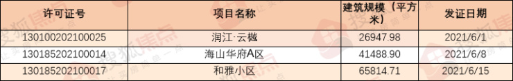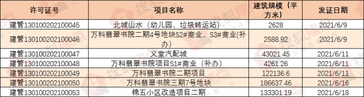 近日,搜狐焦点据石家庄市政府信息公开网站了解,石家庄市自然资源和规划局核发2021年6月《建设用地规划许可证》、《建设工程规划许可证》明细表。