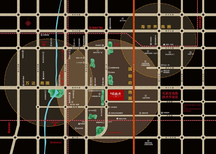 项目位于万达商圈、西美商圈、海世界商圈三大商圈辐射地带。生活购房方面,驾车7公里15分钟可达万达广场、西美商圈、天山海世界。同时项目与融创裕华壹号仅隔一条规划路,可共享融创社区底商配套,满足日常购物集休闲娱乐。教育方面,金马小学、神兴、外国语小学附属幼儿园,27中、44中、精英中学、一中东校区、私立一中、石家庄学院、河北地质大学等学校林立,学习氛围浓厚。燕赵医院、医大一院、儿童医院等优质医疗配套也一应俱全。