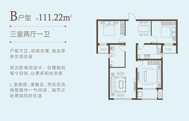 项目目前主推4号楼114㎡三室两厅两卫、111㎡三室两厅一卫户型。
