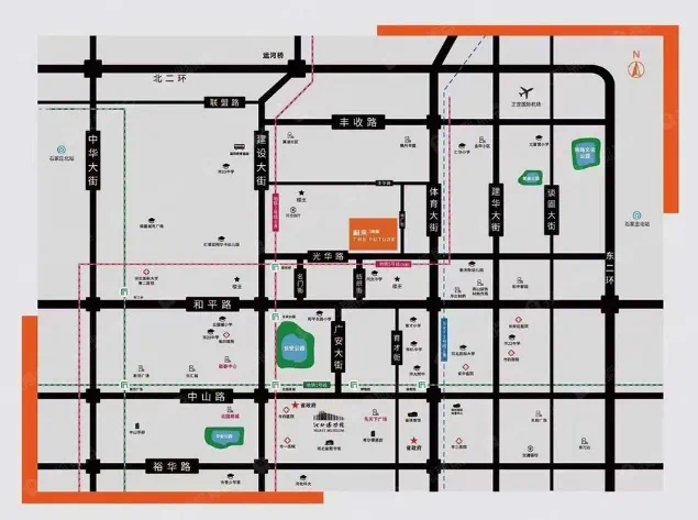 先来看位置,项目临近体育大街及和平路,距离广安大街10分钟以内车程,一环内的繁华近在咫尺。