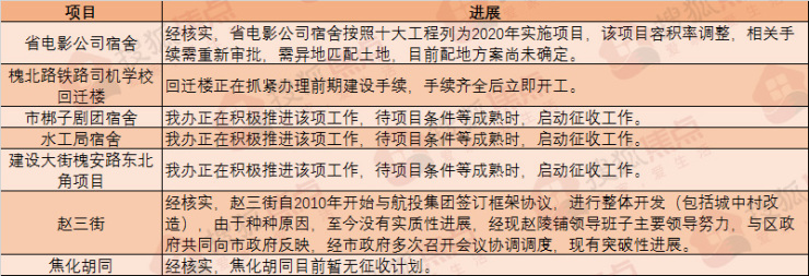 新华区征收办:经核实,省电影公司宿舍按照十大工程列为2020年实施项目,该项目容积率调整,相关手续需重新审批,需异地匹配土地,目前配地方案尚未确定。