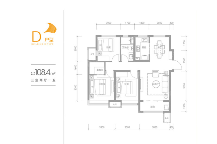 融创城建筑面积约104.4㎡三室两厅一卫户型图