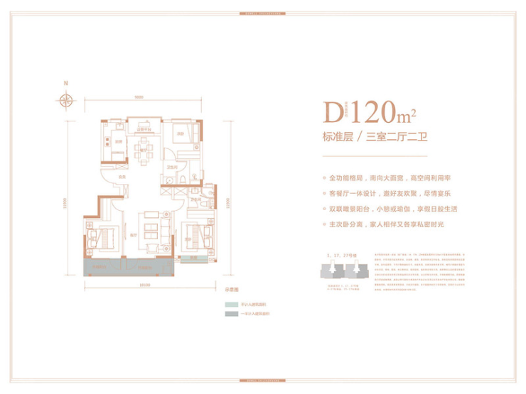 东原启城建筑面积约120㎡三室两厅两卫户型图