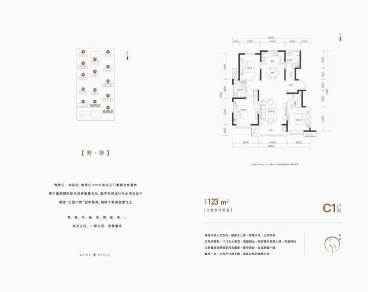 雅居乐御宾府建筑面积约123㎡三室两厅两卫户型图(加推户型建筑面积约125㎡,具体尺寸略有差异)