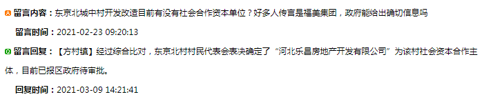 近日,血拼石家庄楼市从裕华区政府网站政民互动版块了解到,“经过综合比对,东京北村村民代表会表决确定了’河北乐昌房地产开发有限公司’为该村社会资本合作主体,目前已报区政府待审批。”