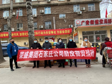 1月10日,荣盛发展石家庄公司向石家庄市桥西区红旗街道办、裕华区建通街道办、长安区建安街道办、建安派出所、广安街道办、广安派出所、荣盛华府居委会、荣景园居委会等捐赠防疫物资,保暖物资及方便食品等。不仅如此,还专门赠送物资慰问孤寡老人、困难群众等。