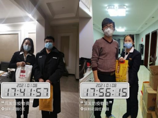 石家庄万科物业在接到实行社区封闭管理通知后,150分钟全面封锁各个园区,逐户电话通知870位业主核酸检测以及防疫注意事项,物业自发找渠道为业主准备一车米面一车鸡蛋,以及日常采买粮油物资等。