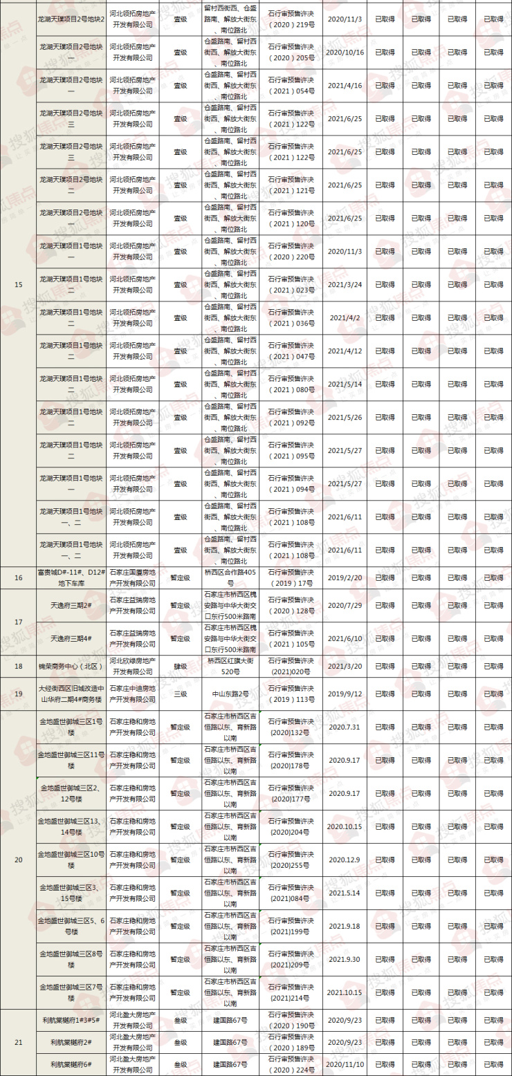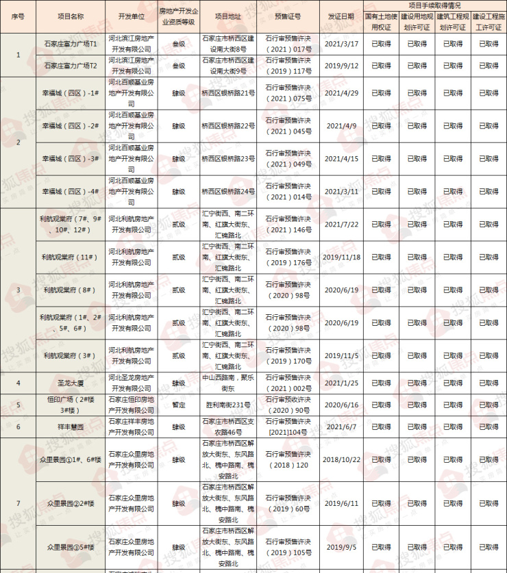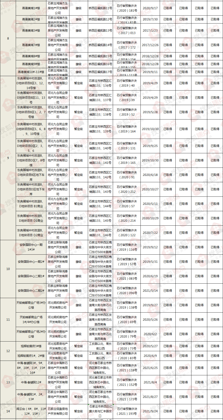 桥西区在建在售五证齐全房源公示 涉及中海、金地等21大项目