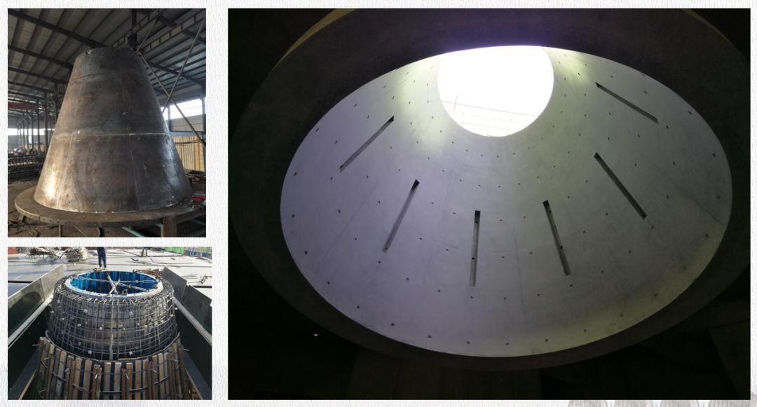 石家庄市规划馆以“确保省优、争创鲁班”为质量目标,对清水混凝土质量要求较高。项目清水混凝土体量大,较多相似的标准分缝,模板可多次重复使用,大量异形构件需要定制大模板。结合以上因素考虑,项目部最终选用了钢框木模板体系,双曲拱、喇叭拱选用全钢模体系。