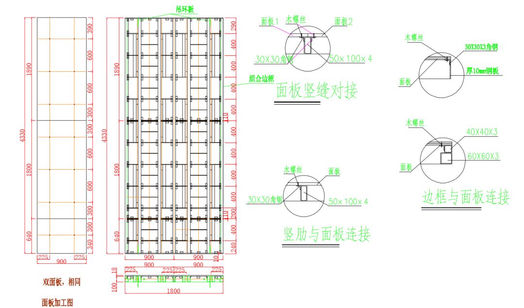 根据装修图,将清水混凝土墙分割成对应的模板,逐一编号,绘制出每块的加工图。将预留预埋定位在模板图上。