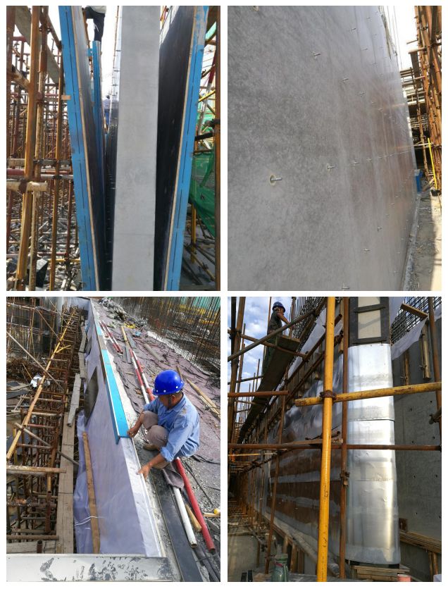 一、结合建筑造型、空间尺寸等,选用了900mm×1800mm的标准模数竖向布置,然后在轴线布设、层高设置、门窗洞口布置时,结合了标准模数尺寸,避免了零碎的模板分缝,整体蝉缝分布规律整齐,也方便了后期施工。