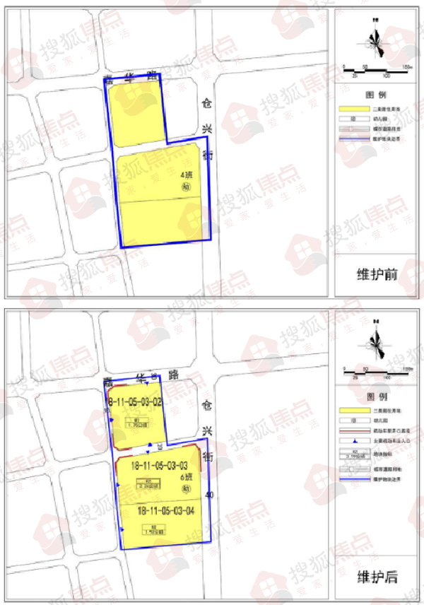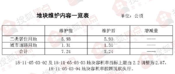该地块维护后,二类居住用地和城市道路用地均保持不变。其中18-11-05-03-02及18-11-05-03-03地块容积率指标上限由2.2调整为2.87,18-11-05-03-04地块容积率按照现状执行。