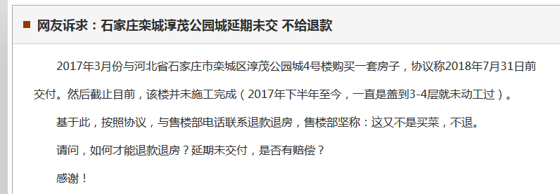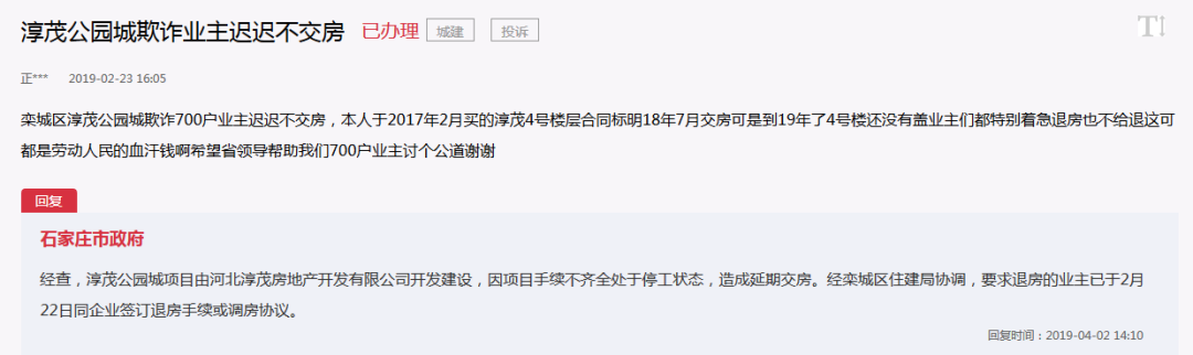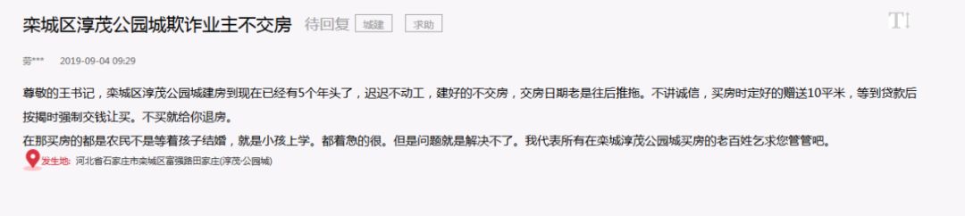 据爆料小分队了解,从2018年起淳茂公园城业主,就陆续在网上发布了关于项目延期交房的问题。