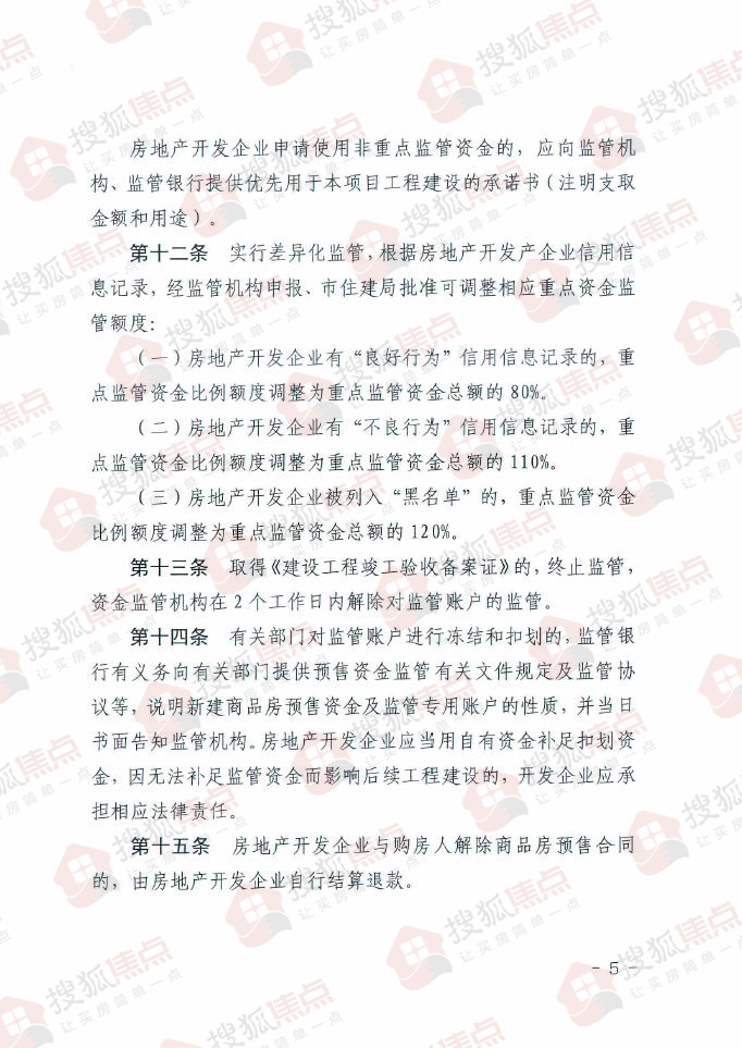 实行差异化监管,根据房地产开发产企业信用信息记录,经监管机构申报、市住建局批准可调整相应资金监管额度: