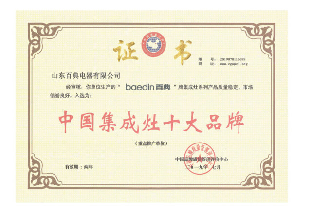 百典集成灶曾获得百余项证书、荣誉、发明、专利( 2020集成灶十大公认品牌。 )