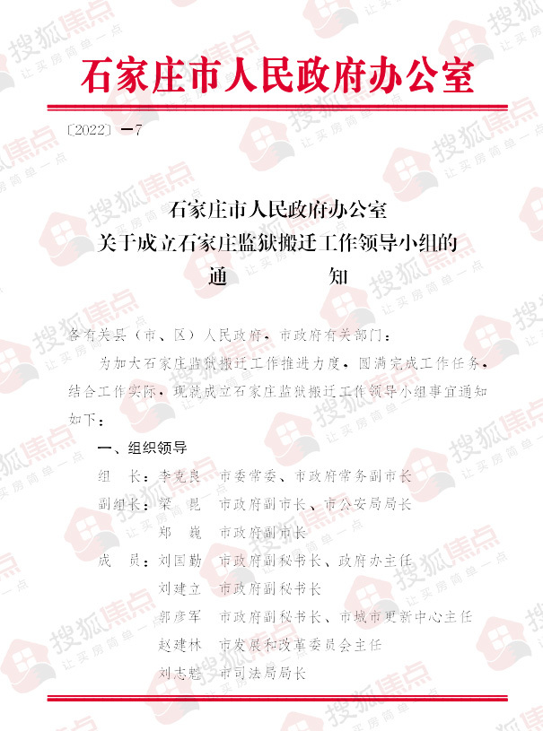 石家庄市人民政府网站发布了关于成立石家庄监狱搬迁工作领导小组的通知。