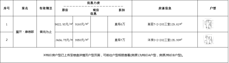 康德郡参加活动,推出2套超值特价房,高层直降6万,洋房直降7万。