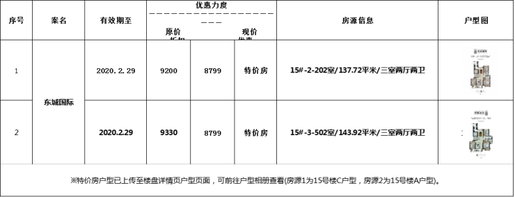 本次活动,东城国际推出2套限时特惠房,均价8799元/㎡。