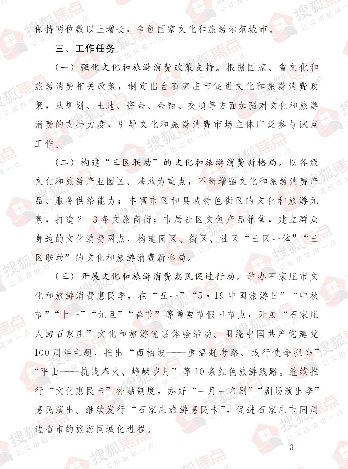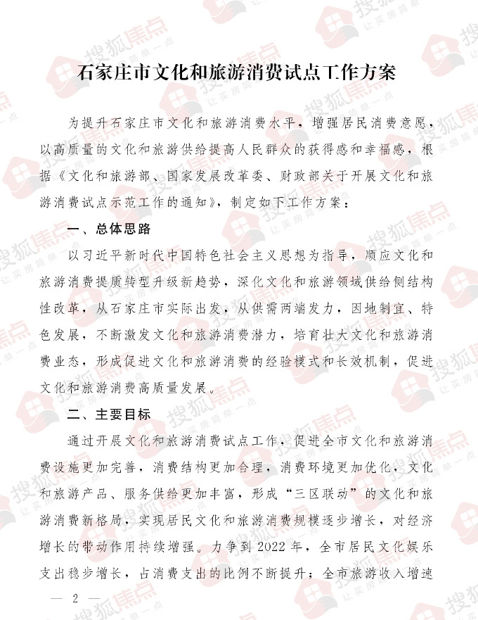 6月23日消息,搜狐焦点获悉,石家庄市政府网站发布了关于石家庄市文化和旅游消费试点工作方案的通知。为提升石家庄市文化和旅游消费水平,增强居民消费意愿,以高质量的文化和旅游供给提高人民群众的获得感和幸福感,根据《文化和旅游部、国家发展改革委、财政部关于开展文化和旅游消费试点示范工作的通知》,制定工作方案。