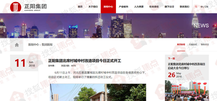 有关北席改造拆迁的新闻,最早见于正阳集团官方网站。一条名为《正阳集团北席村城中村改造项目今日正式开工》的新闻,发表于2018年6月11日。