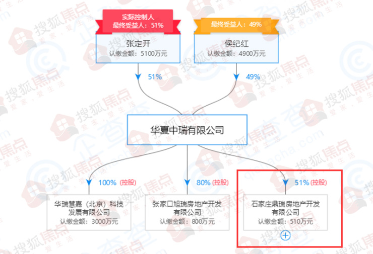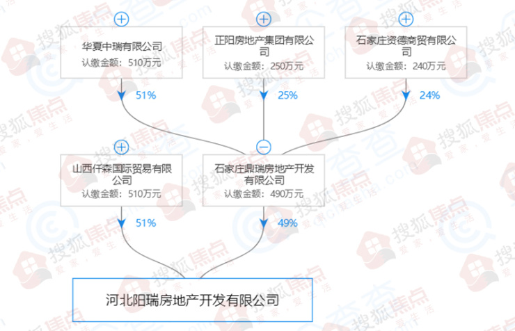 我们看到,除了正阳集团外,还出现了一家名为“河北阳瑞房地产开发有限公司”的开发商。通过企查查搜狐焦点发现,这家开发企业的股东之一为石家庄鼎瑞房地产开发有限公司,而石家庄鼎瑞房地产开发有限公司的大股东则是一家名为“华夏中瑞有限公司”的企业,第二大股东正是正阳房地产集团有限公司。也即是说,河北阳瑞房地产开发有限公司除了与正阳集团有千丝万缕的关系之外,它的实际掌控者为华夏中瑞有限公司。