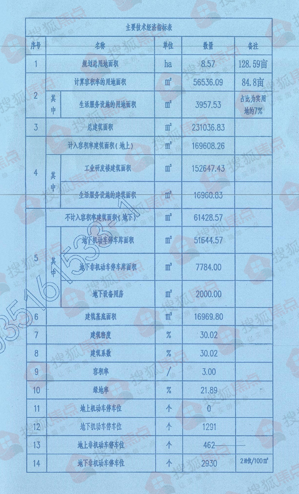 根据项目总平面图及综合经济技术指标表显示,京洲国际产业园建设规划总用地8.57公顷(约合128.59亩),计算容积率的用地面积为56536.09平方米,总建筑面积231036.83平方米,建筑密度30.02%,容积率3.00,绿化率21.89%。