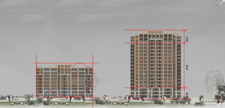 褐石风立面的审美要求,对砖色的层次、砖与砖之间的缝隙都有着不同层次的要求,实现立体丰富的立面结构。