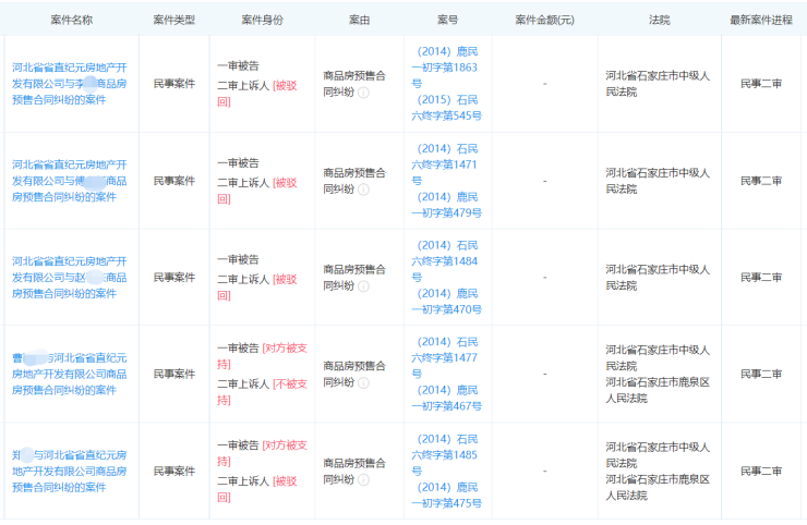 除众多的购房纠纷之外,河北省直纪元还曾因建设工程施工合同纠纷、金融借款合同纠纷、仲裁程序中的财产保全和广告合同被起诉。