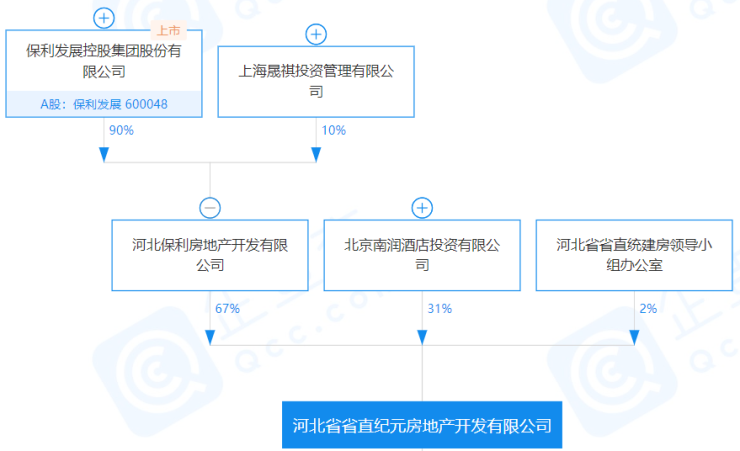 焦点财经查询工商资料发现,河北省直纪元的大股东为保利发展(600048)旗下的河北保利房地产开发有限公司(以下简称河北保利)。其股权结构为,河北保利持股67%,北京南润酒店投资有限公司(以下简称北京南润)为二股东,持股31%,河北省省直统建房领导小组办公室持股2%。
