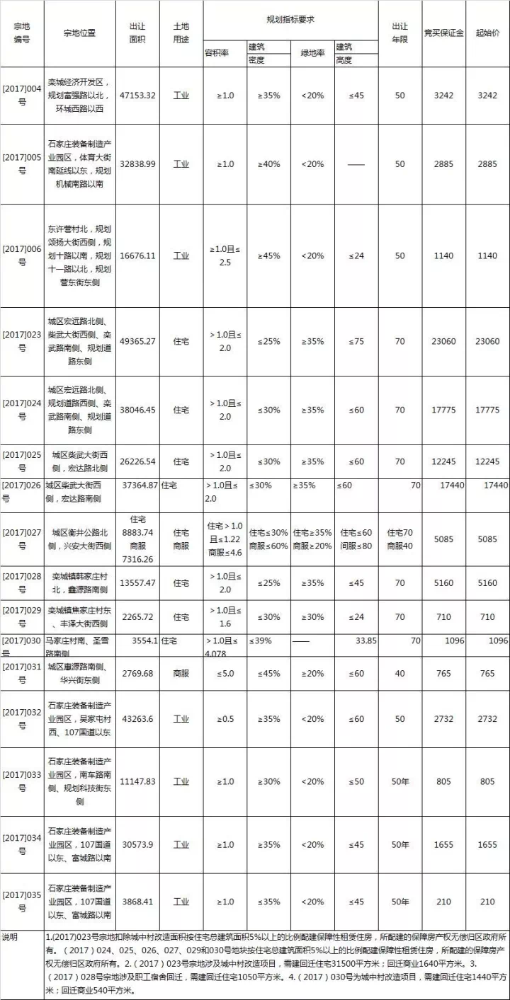 9月26日,栾城区政府信息公开平台发布了《河北省石家庄市栾城区公共资源交易中心国有建设用地使用权挂牌出让公告石栾公告[2017]4号》的公告,包括16幅地块国有建设用地使用权,总面积为374872.26平方米(约合562.31亩)。挂牌时间为2017年10月16日9时至2017年10月27日10时。