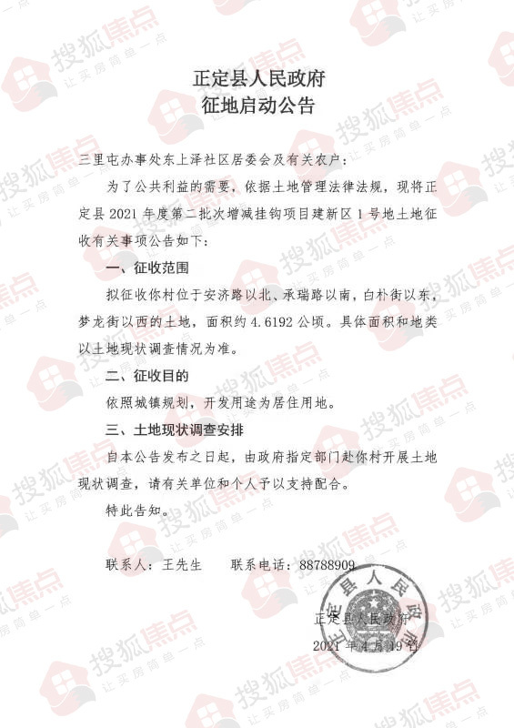 正定县人民政府发布了一则征地启动公告