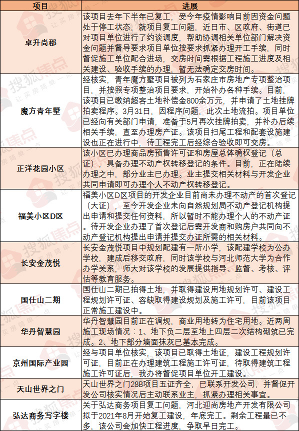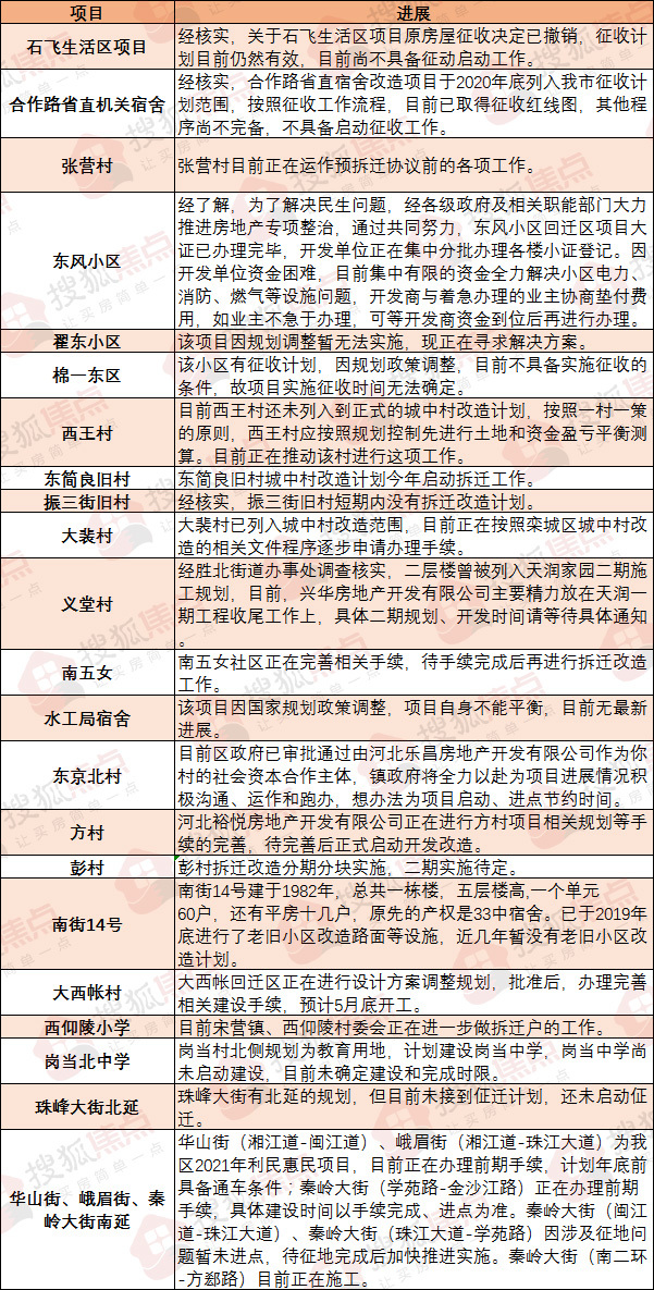 方村镇:河北裕悦房地产开发有限公司正在进行方村项目相关规划等手续的完善,待完善后正式启动开发改造。