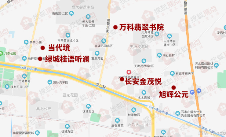 高营大街以西,靠近建华大街,绿城与当代比肩而邻;高营大街以东,金茂打响进军石家庄排名前列枪,与万科、旭辉已成鼎足之势。