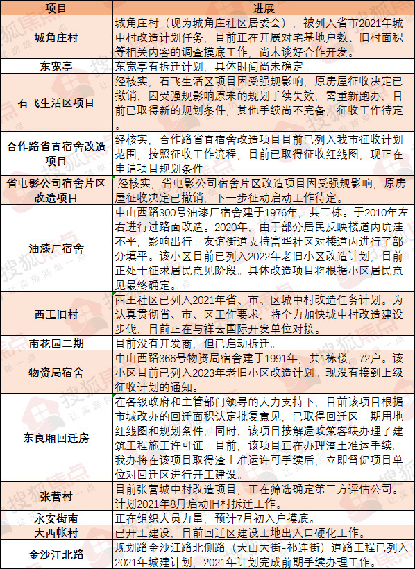 桥西区西里街道办事处:城角庄村(现为城角庄社区居委会),被列入省市2021年城中村改造计划任务,目前正在开展对宅基地户数、旧村面积等相关内容的调查摸底工作,尚未谈好合作开发。
