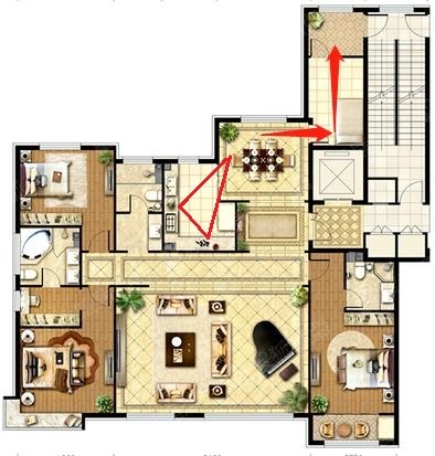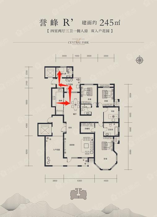 国仕山建筑面积约245㎡:餐厨北侧有入户花园+独立佣人房