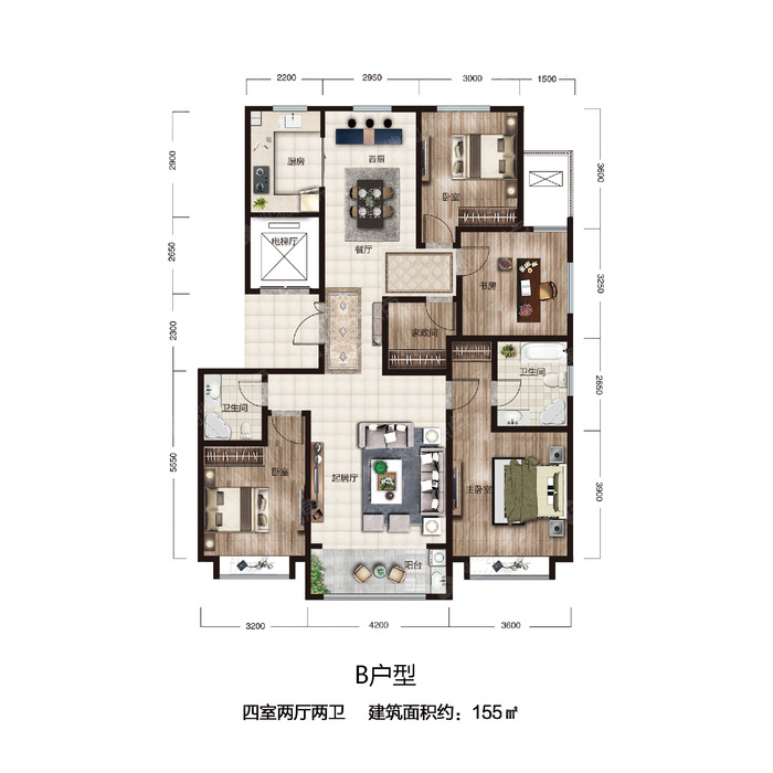 汇君城建筑面积约248.2㎡:超大露台+家政房组合