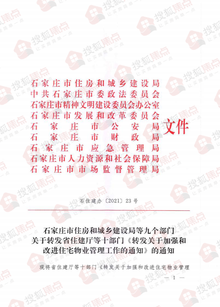 石家庄市住房和城乡建设局发布了《转发关于加强和改进住宅物业管理工作的通知》。