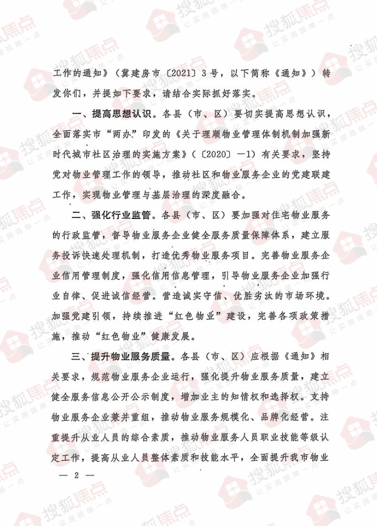 搜狐焦点“楼市快讯”报道:7月5日,搜狐焦点获悉,石家庄市住房和城乡建设局发布了《转发关于加强和改进住宅物业管理工作的通知》。《通知》从融入基层社会治理体系、健全业主委员会治理结构、提升物业管理服务水平、推动发展生活服务业、规范维修资金使用和管理、强化物业服务业监督管理等六方面,对加强和改进住宅物业管理工作提出要求。